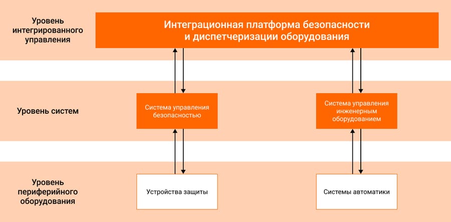 Интеграционная платформа безопасности и диспетчеризации оборудования реализует единую коммуникационную среду сбора и обработки параметров, а также регистрации инцидентов от периферийных устройств инженерно-технической защиты и жизнеобеспечения и аккумулирует на уровне интегрированного управления результаты анализа этих данных от систем управления безопасностью и инженерным оборудованием. Таким образом, операторы дежурной смены получают возможность осуществлять детальный мониторинг и контроль микроклимата в здании, а также защищенности внутренних помещений и прилегающей территории.